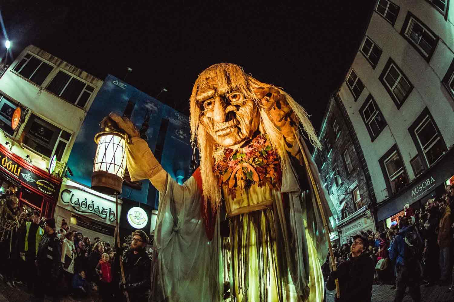 說是職業級的遊行一點也不誇張,因為承包遊行的是高威當地著名的一間大型表演公司,Macnas。成立於1986年,其表演性質有點像是融合了街頭表演藝術、化妝舞會及太陽馬戲團的綜合藝術,主要業務都是在承包世界各地大型的街頭慶典遊行活動,而高威的萬聖節遊行正是他們每年回饋家鄉的重頭戲,以標誌性的Macnas巨型創作、雕塑圖像、煙火秀、特殊造型及舞蹈、現場及原創音樂的史詩級表演為特色。